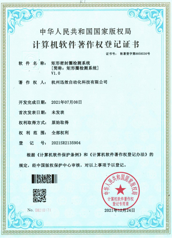 矩形密封圈检测系统 [简称:矩形圈检测系统] V1.0